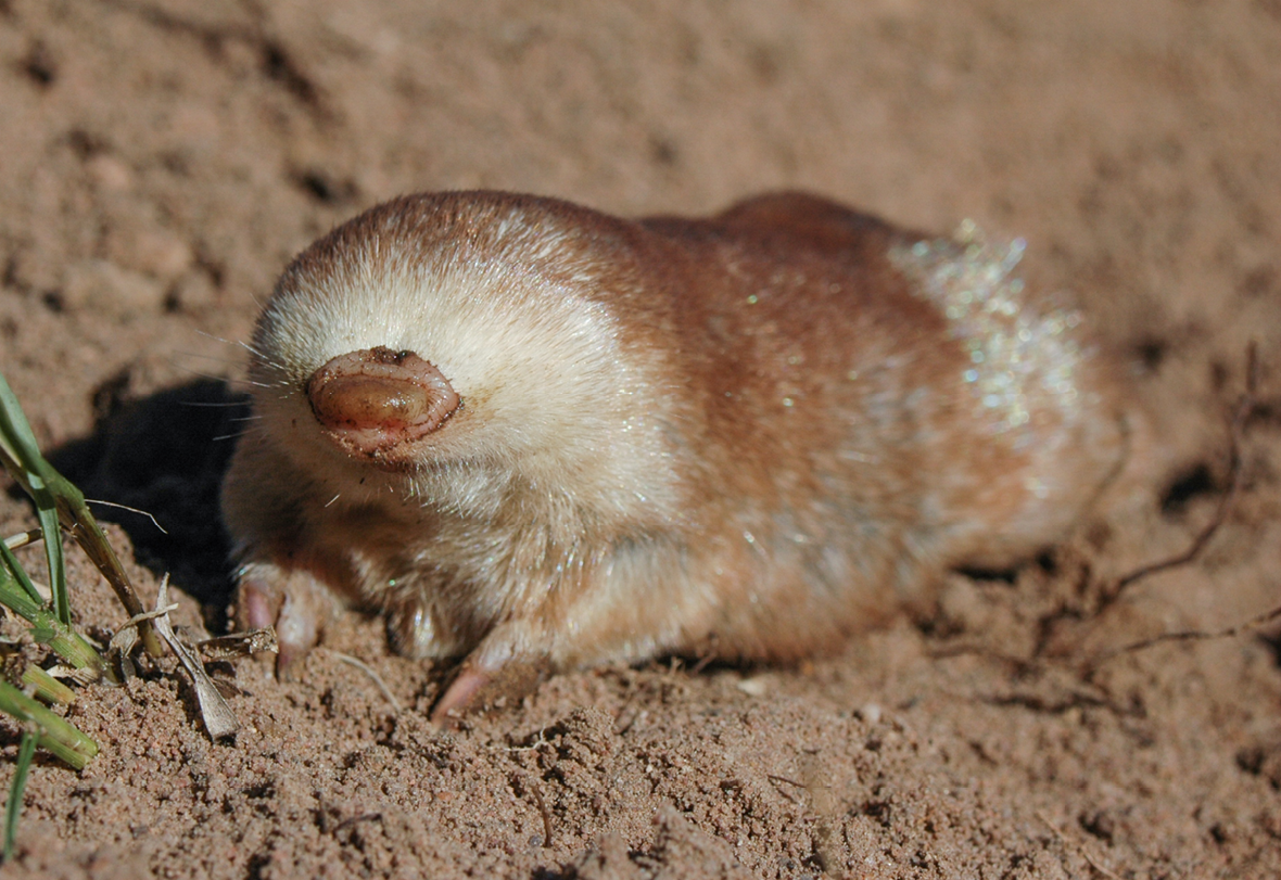 2. 爬行類與小型哺乳類:控溫與潛沙魔術師 鏟吻蜥蜴(Shovel-snouted Lizard): 擁有像鏟子一樣的扁平吻部,腳趾極長,身上帶著與沙子相近的保護色。為了不讓腳底板被高達 60°C 的沙子燙熟,牠們發展出了著名的「熱沙之舞」(Thermal dance):在原地交替抬起左前腳/右後腳,然後再換另一邊,藉此讓腳掌輪流散熱。如果真的太熱,牠們會扭動扁平的吻部,不到一秒鐘就能「潛入」涼爽的沙層深處避暑。側進蛇(Sidewinding Adder): 體型短小,眼睛長在頭頂的正上方(而非兩側),是完美的沙地刺客。一般的蛇在鬆軟的沙地上很難前進,但牠採用「側向位移(Sidewinding)」的方式橫著走。這不僅讓移動速度極快,還能讓身體與滾燙沙面的接觸面積降到最低。獵食時,牠會把自己完全埋進沙裡,只露出頭頂的兩隻眼睛,靜靜等待粗心的蜥蜴經過。納米布金毛鼴鼠(Namib Desert Golden Mole): 沒有眼睛和外耳,披著一身閃閃發亮、如絲綢般的金銀色皮毛,爪子極度發達。牠們不住在地洞裡,因為乾燥的沙子無法支撐地道。相反地,牠們直接在沙子底下「游泳」。由於沒有視力,牠們將聽覺與觸覺發揮到極致,能將頭部貼在沙面上,像雷達一樣感知遠處白蟻活動產生的微小震動,精準定位獵物。鏟吻蜥蜴(Shovel-snouted Lizard 側進蛇(Sidewinding Adder) 納米布金毛鼴鼠(Namib Desert Golden Mole) 3. 大型哺乳類與奇特植物:耐旱的霸主 劍羚(Gemsbok): 納米比亞的國獸。擁有筆直如劍的長角,臉部有黑白相間的冷酷面罩,體態優雅且強壯。為了在沒有水的情況下生存,牠們「拒絕排汗」以減少水分流失,甚至能忍受自己的體溫飆高到 45°C 而不中暑!牠們的秘訣在於鼻子後方有一組被稱為「迷網(Carotid rete)」的微血管冷卻系統,能在高溫血液進入大腦前先將其降溫,確保腦部不會被熱壞。沙漠象(Desert-adapted Elephant): 根據納米比亞環境、林業與旅遊部的官方資料,生活在納米布-諾克路福國家公園一帶的沙漠象,演化出了更寬大的腳掌以適應沙地,並且體型較為瘦長。牠們仰賴代代相傳的驚人記憶力,在數百公里的乾涸河床中尋找隱蔽的水源。目前政府正致力於棲地保護,以維持這些珍貴巨獸的族群穩定。百歲蘭(Welwitschia mirabilis): 長得很像一堆被直升機螺旋槳打爛的巨大海帶,中心有一個木栓質的巨大莖盤,是冰河時期遺留下來的裸子植物活化石。百歲蘭一生「只長兩片葉子」,這兩片葉子會持續生長,尾端不斷枯萎磨損,分裂成許多長條。它有著極深的木質主根來尋找地下水,同時寬大的葉片能捕捉海霧。目前已知最古老的百歲蘭,在沙漠中已經活了超過 1,500 年。納拉瓜(Nara Melon): 一種沒有葉片、長滿尖刺的灌木,結出綠色帶有尖刺的瓜果。為了減少水分蒸發,它放棄了葉子,直接用帶刺的綠色莖幹進行光合作用。它的根系能深達地下 50 公尺尋找水源。納拉瓜是沙漠中極其重要的食物來源,從鴕鳥、鬣狗到當地的辛巴族(Himba)與托普納爾族(Topnaar)原住民,都高度仰賴這種果實生存。劍羚(Gemsbok) 沙漠象(Desert-adapted Elephant) 百歲蘭(Welwitschia mirabilis) 納拉瓜(Nara Melon) 古老的納米布沙漠絕非一片死寂,而是充滿生命韌性,數千萬年的荒涼與極端乾旱 ,非但沒有終結這裡的生命,反而催生了地球上最驚人的演化奇蹟 。從大霧甲蟲的神奇集水術 到百歲蘭的千年堅守,每一種生物都以超凡的適應力存活下來 ,將自然逼出的潛力發揮到極致 。本格拉寒流帶來的救命海霧 ,滋養了無數世代的異星客 ,構築出這個由風、霧與碎屑交織而成的獨特生態圈 。下次當你面對那片無盡的紅色沙海 ,不妨在心底向這些在「極限伸展台」上發光發熱的生存大師們致敬 ,因為牠們的故事,正是生命在不可能之中創造可能的最好證明 。