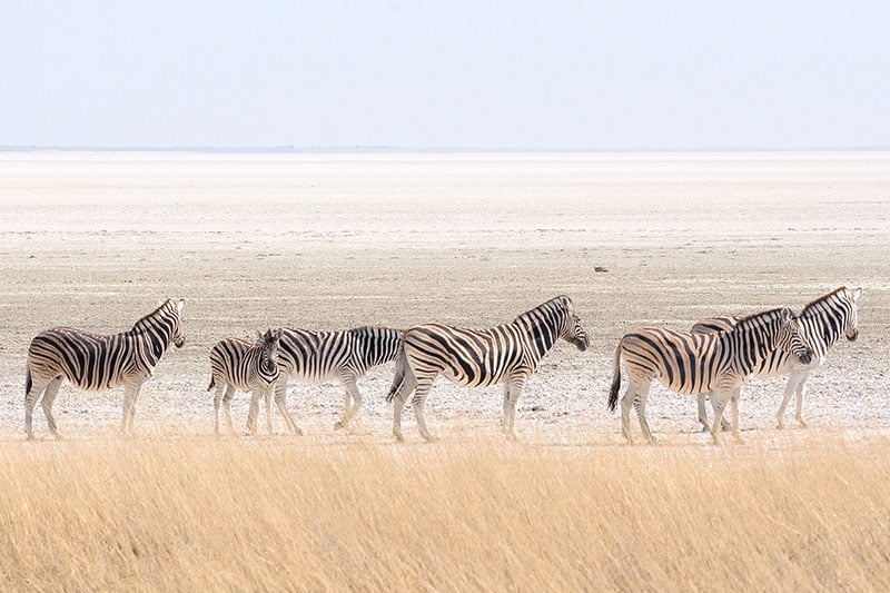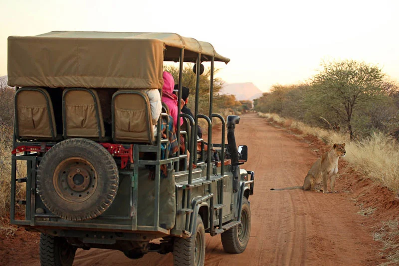 乘坐放開式的野生動物遊覽車,我們將一整天專注於在伊托夏國家公園內尋找豐富的野生動物,這個公園環繞著一個乾旱的鹽漠,稱為伊托夏盆地 (Etosha Pan) 。公園內棲息著非洲五霸中的四種 – 大象、獅子、豹和犀牛。1907年,當時的德國總督馮·林德奎斯特將此地宣告為納米比亞的第一個保護區。儘管伊托夏國家公園面積廣大,但只有盆地的南緣對遊客開放。在公園內觀賞野生動物主要集中在水坑周圍,有些水坑是由泉水供應,有些則是由深井供水,這些都是坐下來觀賞超過114種不同的野生動物,或對於熱愛鳥類的遊客來說,超過340種鳥類的理想之地。像長頸鹿、藍角馬、平原和山斑馬、鬣狗、獅子、豹、如角馬、牛羚、跳羚等各種受歡迎的野生動物,以及一些瀕危物種,如黑犀牛、獵豹和黑臉狷羚都可以在這裡找到。一個廣泛的道路網絡連接著超過30個水坑,讓遊客有機會在公園內進行全面的野生動物觀賞之旅,因為每個不同的區域都將提供各種不同的遇見。